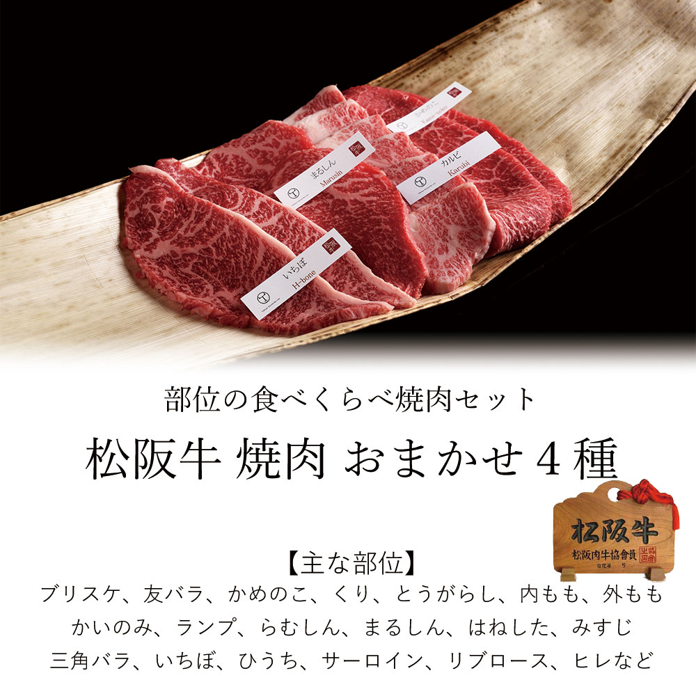 本日ご用意できる松阪牛の中から、霜降り肉と赤身肉をバランスよく盛り付けた盛合せです。松阪牛の中でも特に成熟度の高い個体を一頭買いしていますので、噛むことで味わいが広がる部位のうま味と香り、脂の風味と甘みを感じることができます。出荷当日おすすめの部位4種類をご用意します。