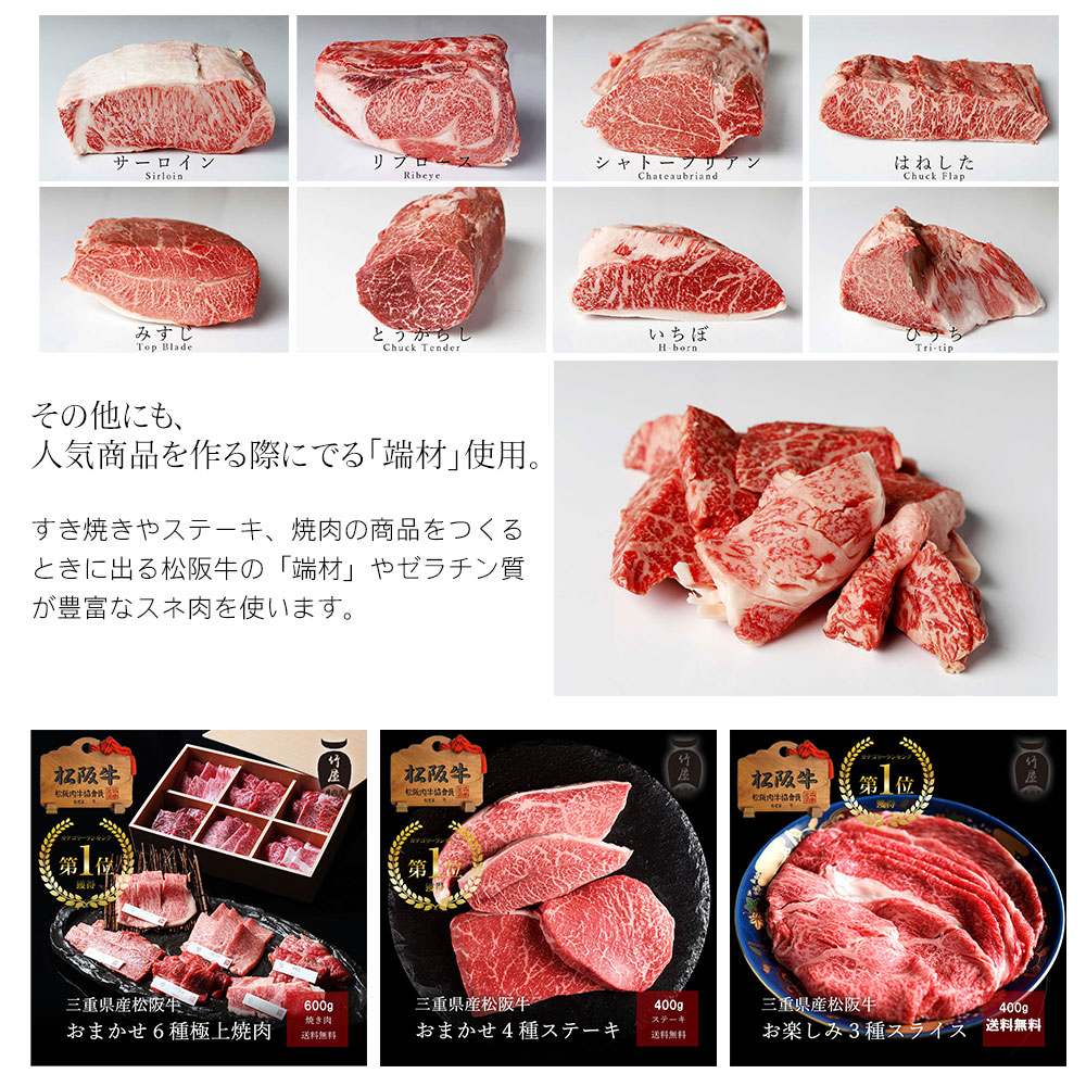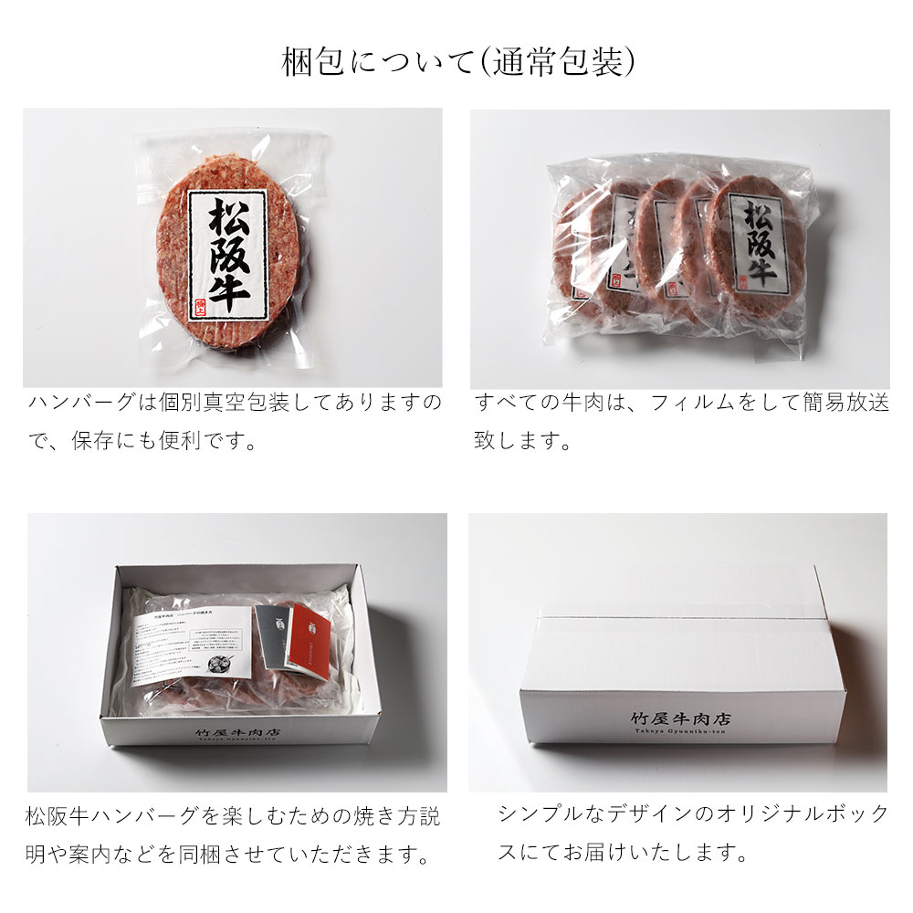 牛肉は松阪牛の中から竹屋独自の基準で選んだ特別な松阪牛を使用しています。松阪牛肥育エリアの中でも特に自然環境と水が綺麗な地域の牛の中から血統と肥育方法、肥育期間などの基準をクリアーした松阪牛を使用したハンバーグです。