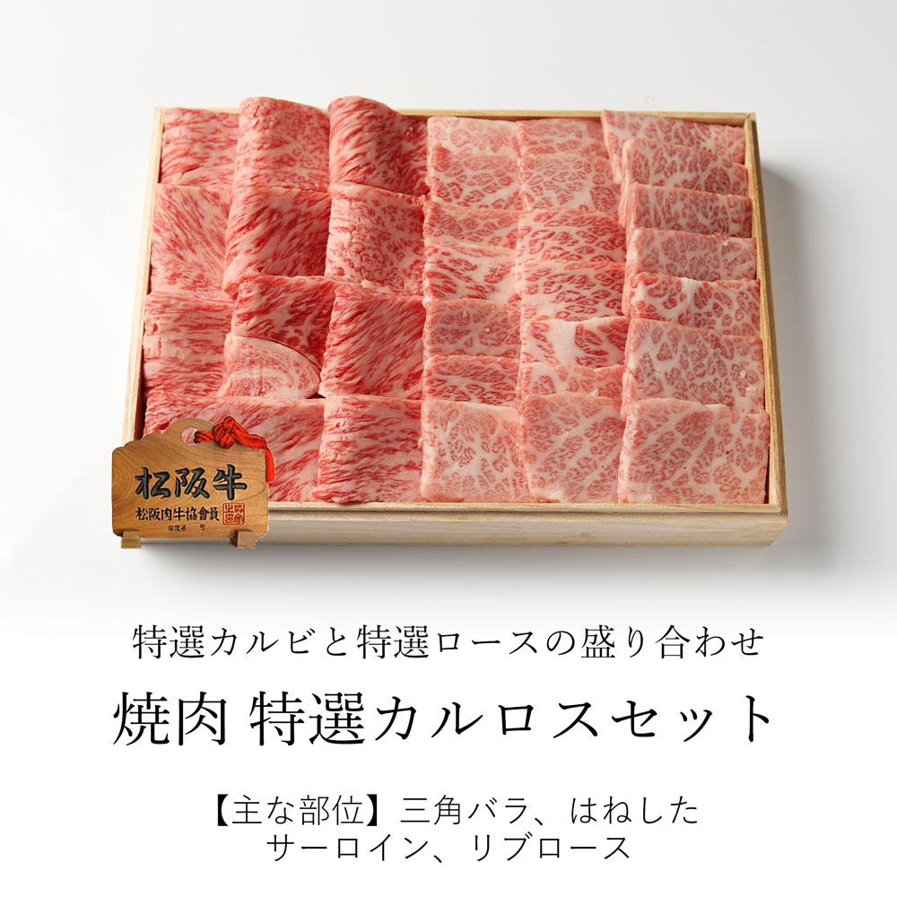 松阪牛の最上位部位を贅沢に楽しめる「松阪牛 焼肉 特選カルロスセット」は、特選カルビと特選ロースの絶妙な組み合わせが魅力です。柔らかく、絹のような食感の特選ロースと、甘味が際立つ特選カルビが、牛肉本来の風味を引き立てます。印籠桐箱に入っており、特別な贈り物やお祝いのシーンにぴったりの一品です。家庭での特別なひとときやおもてなしにも最適なこのセットで、贅沢な味わいをお楽しみください。