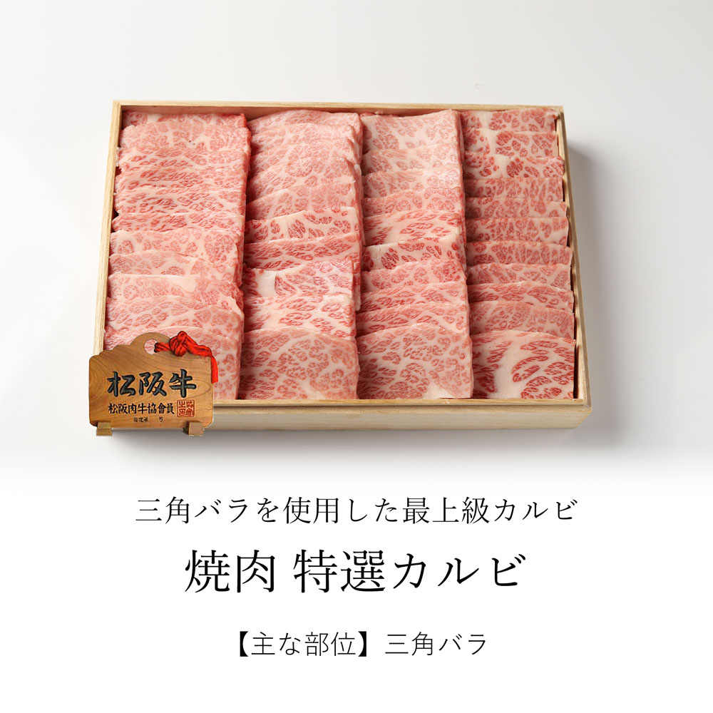 松阪牛の特選カルビは、カルビの王様と称される肩さんかくバラを使用した逸品です。赤身と脂肪が絶妙に交差し、霜降りが美しく、見た目も味も最高峰の牛肉です。とろけるような食感と豊かな風味が特徴で、贅沢なひとときを演出します。印籠木箱に入っており、特別なギフトやお祝いに最適です。大切な方への贈り物として、心に残る一品をお届けします。